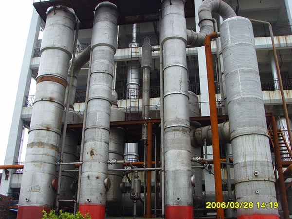 公司還涉足高濃度污水處理行業(yè)。經過公司研發(fā)人員的努力,開發(fā)出了YBJXH型強制降膜循環(huán)多效、TVR、MVR蒸發(fā)器用于處理工業(yè)污水,并在聯(lián)邦制藥成都和內蒙古公司、印度阿拉濱度、煙臺萬潤精細化工等應用成功。另在2002年山東魯洲集團河南公司成功利用管束干燥機的廢熱制造了18噸廢熱蒸發(fā)器,用至現在。其中聯(lián)邦制藥成都公司選用的污水處理蒸發(fā)器有:50噸一套,35噸2套,12噸一套;聯(lián)邦制藥內蒙古公司選用50噸污水處理蒸發(fā)器共3套;液糖車間YBJM30噸四效降膜蒸發(fā)器2套;YBJM20噸四效降膜蒸發(fā)器2套。印度阿拉濱度25噸1套、15噸3套、10噸1套、5噸1套;2.5噸8套等等。